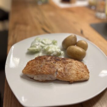 Gebratenes Fischfilet mit Gurkensalat