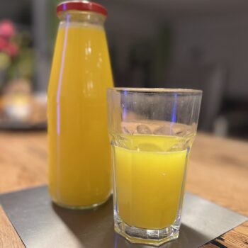 - Dann die Zitrone direkt in die Kanne auspressen. Erst nach dem pürieren, damit man evtl. Kerne nicht mit zerkleinert. Es ist kein Problem, wenn Kerne in die Kanne fallen.